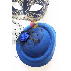 Капелюх-таблетка з вуаллю синій (15 см х 13,5 см)
