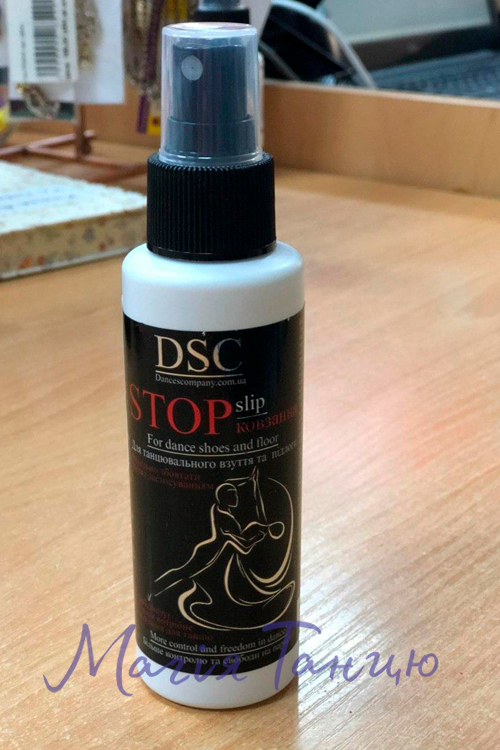 Спрей антискользин Stop Slip для взуття і танцювальних поверхонь. Це засіб створено, щоб убезпечити танцюристів від небажаних послизань, падінь і, відповідно, травм. У форматі невеликої пляшечки з розпилювачем антискользин Stop Slip зручний, щоб завжди можна було носити його з собою. Наноситься, як спрей, тому витрачається дуже економно.