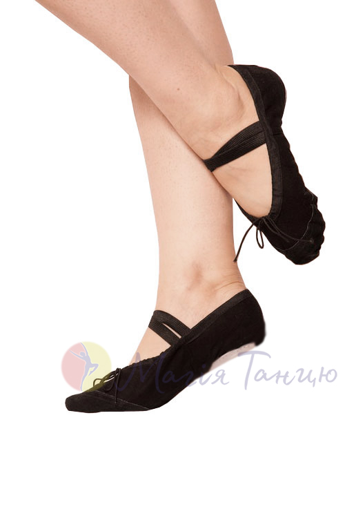 Балетки для танців та хореографії чорні зі вставкою із шкіри