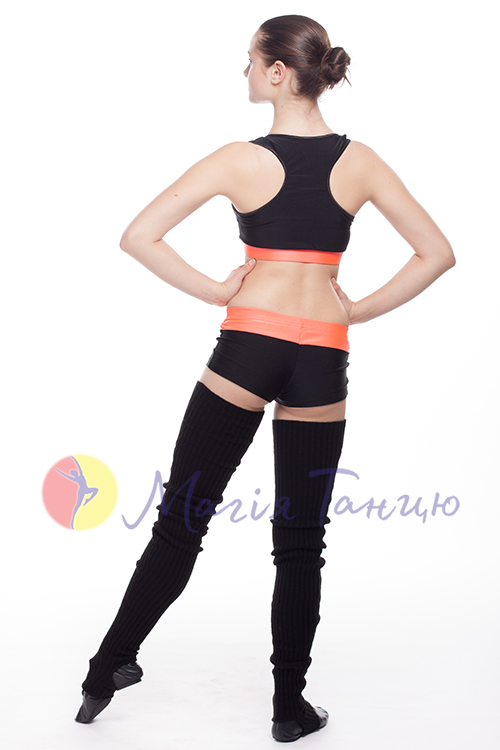 До гетр також є топи для розігріву відповідних кольорів, чорні шорти, комбінезони розігрів, болеро-рукава, комбінезони-шорти.