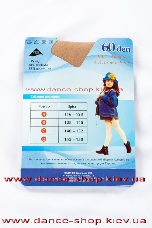 Колготи для танців (без торса) тілесного кольору. Такі колготи для танців підійдуть під всі сценічні костюми і зроблять ваш образ естетичним. Склад: поліамід 88%, дорластан 12%, щільність - 60 den. В наявності є колготи в 4 розмірах - зріст дівчаток від 116 см до 158 см.
