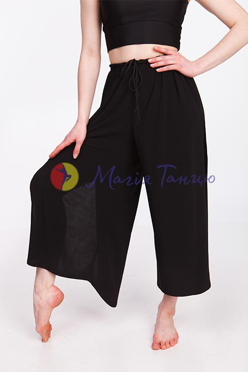 Урізноманітнити свій одяг для пол денс легко! В цьому вам допоможуть чорні кюлоти з розрізами. Тканина трикотажне масло зовсім не схильна зминатися. Такі кюлоти для пол денс підкреслюватимуть ваші рухи ефектними злетами чорних штанин. Розрізи оголюють ноги до самих стегон, аби ви могли продемонструвати всю їх красу та силу. Тонка шнуровка на талії відчувається майже невагомою, але кюлоти тримає міцно.