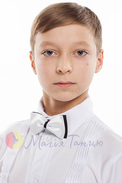 Краватка-метелик біло-чорний. Аксесуар для танців та урочистих заходів. Завжди виглядайте стильно і модно у святковому костюмі з метеликом! Довжина метелика під сорочку - 10 см. Колір - біло-чорний. Кріпиться на резинці. Виробництво - Україна! Зроблено з гордістю!