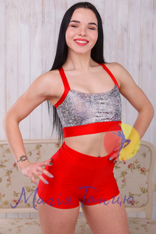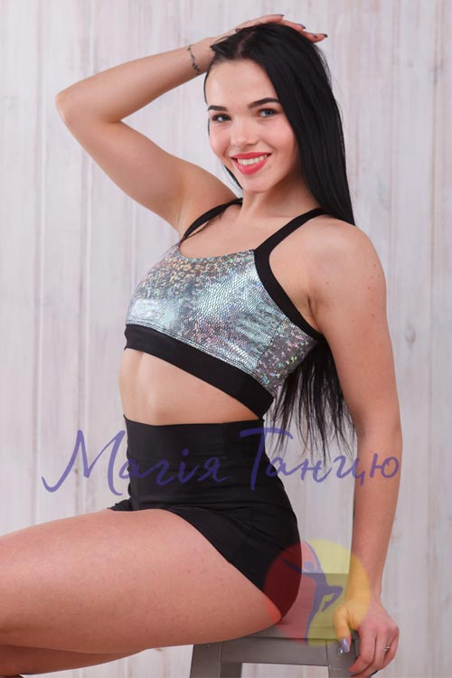 Завжди одяг для пол денс задає настрій танцю і демонструє характер танцівниці. Комплект з біфлексу "Каліфорнія" зробить ваш виступ дійсно сяючим, адже в основі топа — срібляста тканина, яка так чарівно мерехтить, особливо у світлі софітів.