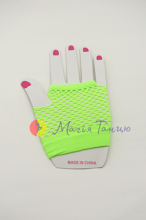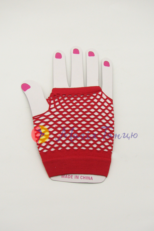 Рукавички короткі з сітки (різні кольори). Розмір - універсальний, підходять на будь-який об'єм руки. Використовуються як елемент одягу в стилях стрип, трайбл і інших шоу постановках. Є різні кольори (чорний, червоний, білий, рожевий, салатовий, синій). Виробництво - Китай.