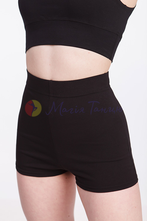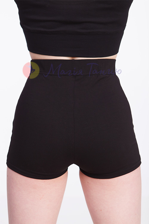 Бавовняні шорти із завищеною талією чорні для танців, фітнесу, домашніх тренувань. М'яка широка резинка на талії забезпечує надійну фіксацію та зовсім не завдає дискомфорту. Можна використовувати як тренувальні шорти для бальних танців, адже за дизайном та покроєм вони підходять ідеально. Допомагають краще відчувати рухи стегон. Чорний колір сприяє вищій концентрації, адже ці шорти для танців не мають жодних відволікаючих елементів. Просто вдягни й танцюй!