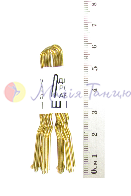Набір з 10 шпильок золотого кольору стане в пригоді дівчатам та жінкам, які часто збирають волосся в зачіску для балету чи бальних танців. Ви можете обрати потрібну вам довжину шпильок з наявних (5 см, 7 см або 8 см).