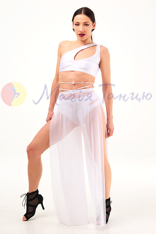 Широкі жіночі штани з сітки для pole dance, high heels. Модель без вшитих шортиків. На фото з цими штанами чорний та білий комплект "Адріана". Також у нас ви знайдете багато окремих шортів та трусів з високою посадкою під ці прозорі штани.