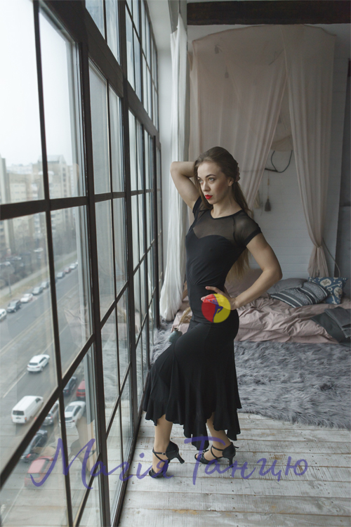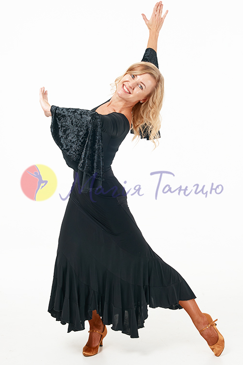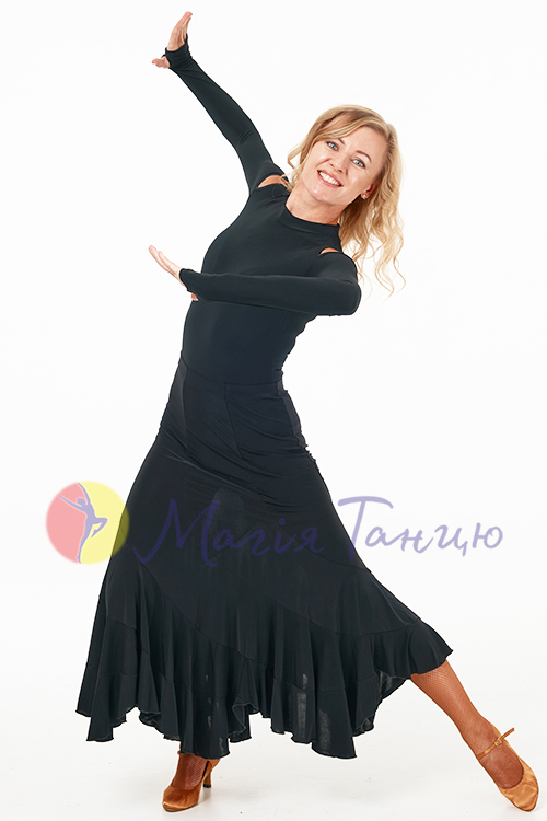 Спідниця стандарт Гвинт (2011), для тренувань бальною програмою. Спідниця пошита з хорошого матеріалу, масла чорного кольору. Дизайн тренувальної спідниці у формі гвинта, що не сковує рухи, гарно вглядає під час виконання танцю. Танцівниці не повинно нічого заважати під час удосконалення танцювальних па. Саме цим керуються українські майстри коли створюють тренувальний одяг.