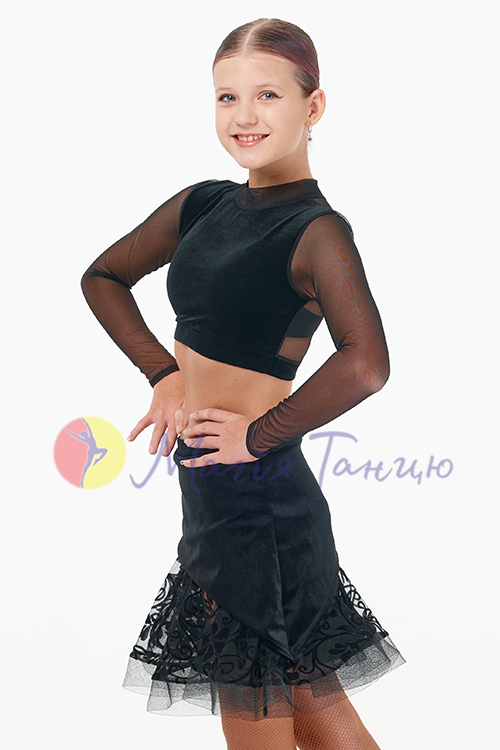 В такій чорній короткій спідниці для латини ви зможете продемонструвати всю красу своїх ніг та майстерність виконання танцю.