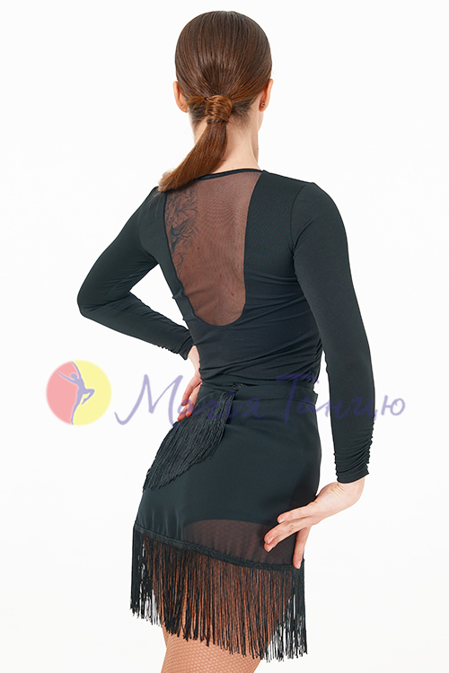 Спідниця-пояс на зав'язках шифонова з бахромою чорна