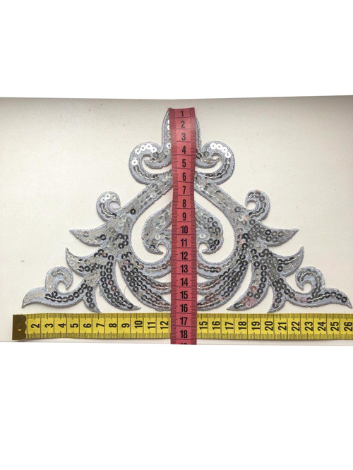 Аплікація з пайєтками на клейовій основі. Прекрасна фурнітура для оздоблення вашого костюму для східних танців. Ширина аплікації - 29 см, висота - 13 см. Обов'язково перевірте, чи підходить вам розмір аплікації, тому що на фото аплікації виглядають однакового розміру, а вони є менші і більші. Готові вироби виглядають красиво і витончено. Аплікацію необхідно приклеїти паром вашої праски. Є різні види, моделі, розміри.